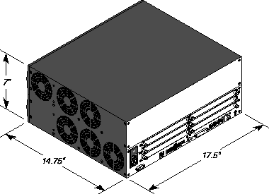 The following illustrations show the dimensions of both base MAX units-the single power supply unit and the redundant power supply unit.