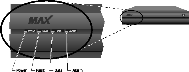 Before you start up the MAX, you need to understand the LEDs on the MAX. Figure 2-8 shows the location of LEDs on the front panel, Figure 2-9 shows the location of the LEDs on the redundant MAX front panel and Figure 2-10 shows the Ethernet interface LEDs on the MAX back panel.