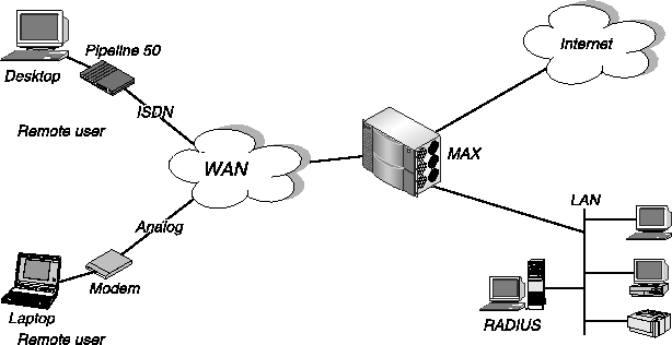A single RADIUS server can administer multiple security systems, maintaining profiles for thousands of users. RADIUS vastly increases the number of authentication entries that the MAX can support. Without RADIUS, you must limit yourself to the number of local Connection profiles the MAX supports.