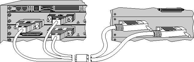 The MAX TNT IDSL card ships with a dual 50-pin telco to triple-DB37 cable (part number 2510-0311-xxx, where xxx represents digits subject to change). This cable allows you to efficiently use all the ports on a 50-pin telco connector. Because each IDSL card has 32 ports, you need two DB37 connectors and two 50-pin telco connectors (each of which support up to 24 ports) to accommodate all the ports on the IDSL card. This leaves the second telco connector underutilized. The third DB37 connector is designed to be attached to a second IDSL card, thus bringing a total of 48 ports from the DB37 connectors to the 50-pin telco connectors. Figure 12-2 illustrates the recommended use of the IDSL cable.