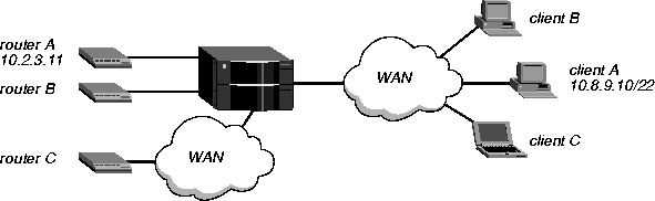 admin> writeWhen a client default gateway is specified for a WAN connection, all packets received across the connection are forwarded to the specified next-hop router. If the remote device is another access router, the default gateway is used for packets sent by all hosts behind that router.