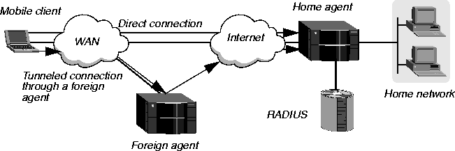 - The foreign agent authenticates the mobile client by means of a RADIUS user profile.