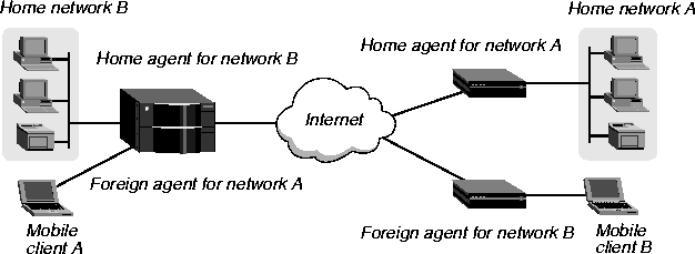 agent and the home agent. At this point, the mobile client connects to the home network as
