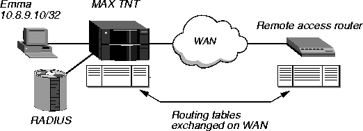 Figure 9-1. Dial-in user requiring a static IP address (a host route)